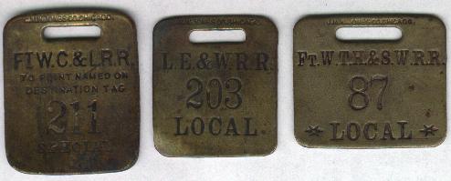 The second is a "LOCAL" from the Lake Erie & Western RR (1879-1922) The Third is from the Forst Wayne, Terre Haute & Southwestern RR (1895-1897) Although no conclusions can be made about the dates of