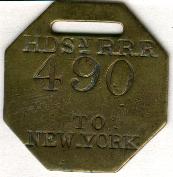 Morehouse of Jersey City New Jersey is an enigma. These checks are very old. My two examples are true antiques. One example has the railroad name in an arc. This is a very early style of lettering. I will hazard to speculate that checks with arc lettering is pre 1870. This would have been a very difficult task for the die setter to accomplish. Note that the easiest way to identify a Morehouse tag is by the unique "4".