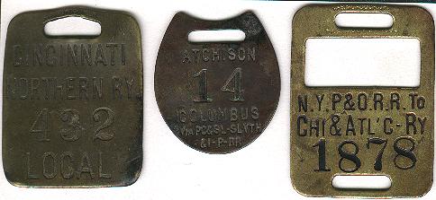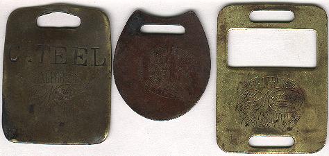 The Murdock patent is for a reversible check that is folded back onto itself. These checks are obvious because of two protruding rivets (on both front and reverse) next to the lower strap opening. In a reversible pair the bag check is always thicker than the duplicate (customer) check. The patent date is August 22nd, 1865.