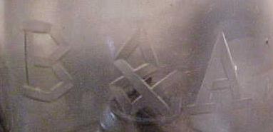 | Eastern Railroad "triangular cut" globe. Note the narrow horizontal lines | Boston & Albany wide cut "block" style lettering. It's interesting that there is no "RR" marking.. | |