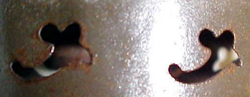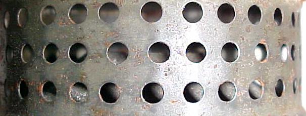 Detail of "rounded five point star" intake holes on base assembly. This type of intake hole is unique to NEGlass. Also note the bottom ridge that holds the spring loaded bell assembly. |