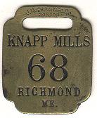 The Knapp mill is/was in Richmond Maine. This tag has a nice later John Robbins hallmark. I do not know its use. |
