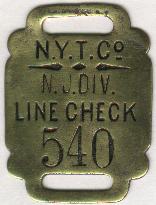 Transfer / Express Company Tag example This is a scarce New Jersey Division "Line Check". I don't know the exact use of this tag, but it is The hallmark is rough, but it seems to be made by the American Railway Supply Company of New York. |