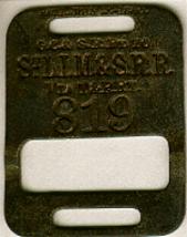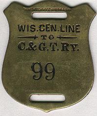 | Wisconsin Central and Chicago & Grand Trunk. This is a very large shield with a slightly offset number. Note with the double slot, it is a reversible (opposite routing on reverse). | Chicago, Indianapolis and Louisville Local. This tag has to be later than 1898 with this name form. | |