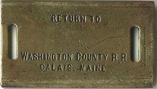 | The Washington County Railroad lasted from 1898 until 1911, when the Maine Central absorbed them. The makers hallmark is barely visible on the right side. The makers hallmark is vertical in this view. |